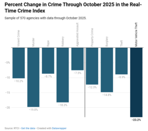 So says the Substack Jeff-Alytics, the amazing resource run by crime analyst Jeff Asher. (I was going to say “crime enthusiast” but…no.) Of course, 2025 is not quite over yet. But Jeff’s got most of this year’s numbers in, and he is finding that: