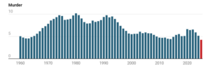 You might be tempted to think, “Well, even if murder is down, it’s still way higher than when I was a kid!”