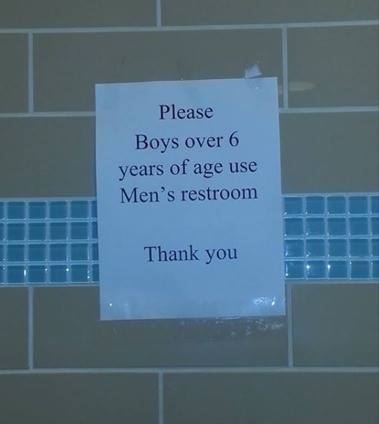 Everyone else has posted about this Oklahoma City bathroom sign, so I guess it’s time for me to weigh in, too: Are 6-year-old boys too old to be dragged into the ladies room?