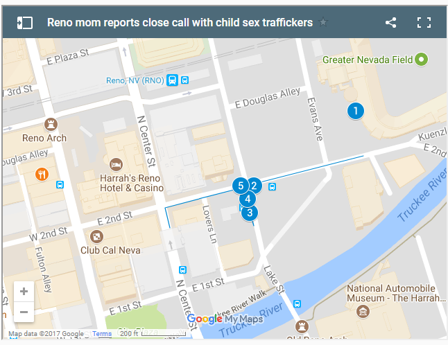 On Sept. 3, around 8 p.m., Holland and her family believed they may have encountered four men possibly involved in a child sex trafficking ring as they were walking to the Cal-Neva parking garage on the corner of First and Center streets in downtown Reno.