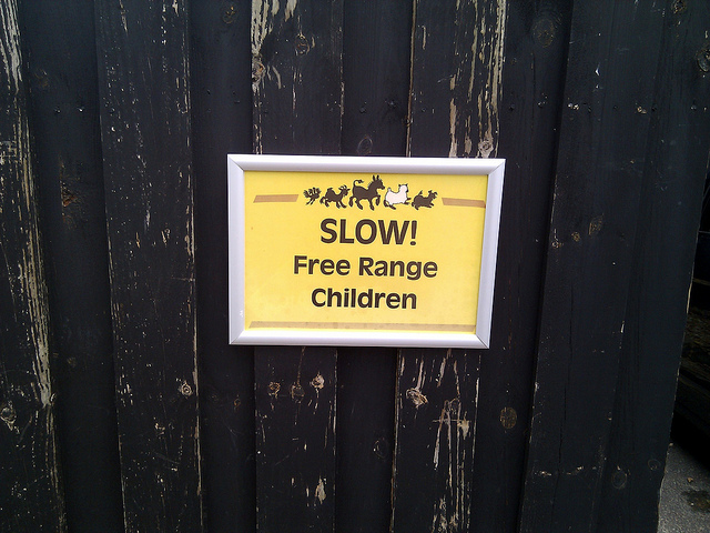 I went looking for a copyright-free "Free-Range Kids" image and found this sign. And it was taken by the wonderful Cory Doctorow!