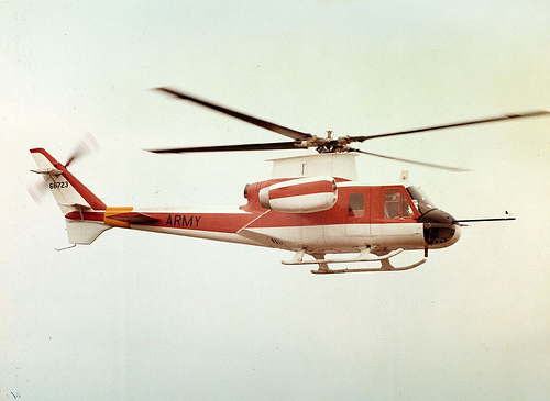Interesting choice of helicopter picture. The one you chose is that of the Bell 533, an experimental version of the familiar Huey of the Vietnam War era. The Bell 533 is among the fastest pure helicopters ever built with a top speed of over 300mph. It was flight tested in the late 1960s.