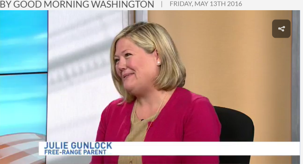Wow. I’m so impressed by Julie Gunlock standing her, well, guns, when talk show hosts try to suggest she might have done something wrong letting her three sons (9,7 and 5) wait in the car while she got a rotisserie chicken. Poise, compassion and common sense are going to win this! – L