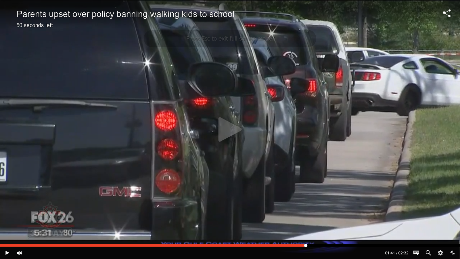 The principal of an elementary school in Magnolia, TX, has forbidden parents from picking up their kids to walk them home. No matter how close the children live to the school, they are required to take the bus or be picked up by car, Fox 26 in Houston is reporting.