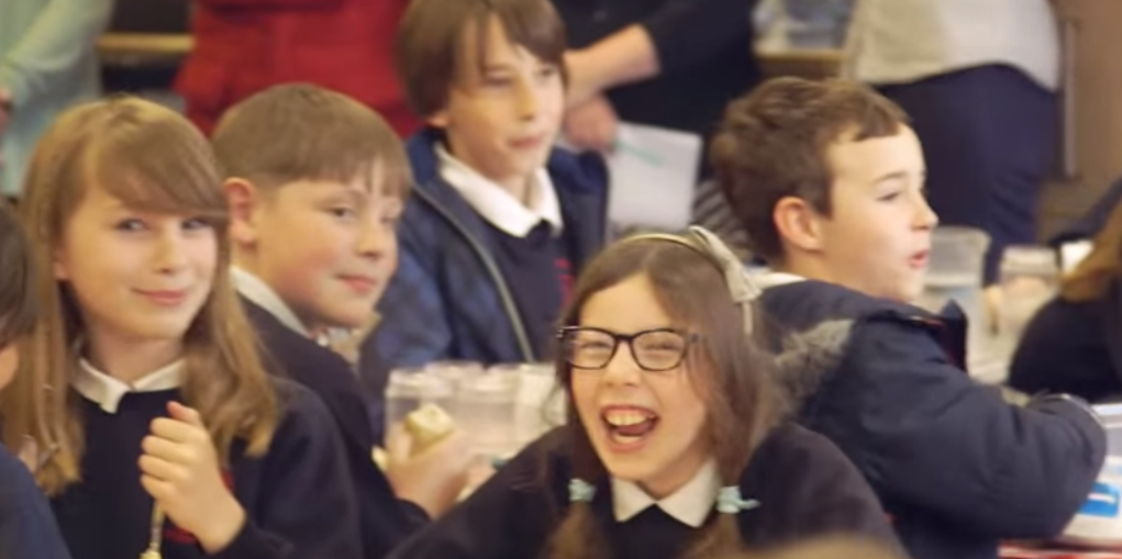 It’s obviously a school in the UK as the kids are allowed to eat with a KNIFE and fork like civilized people!