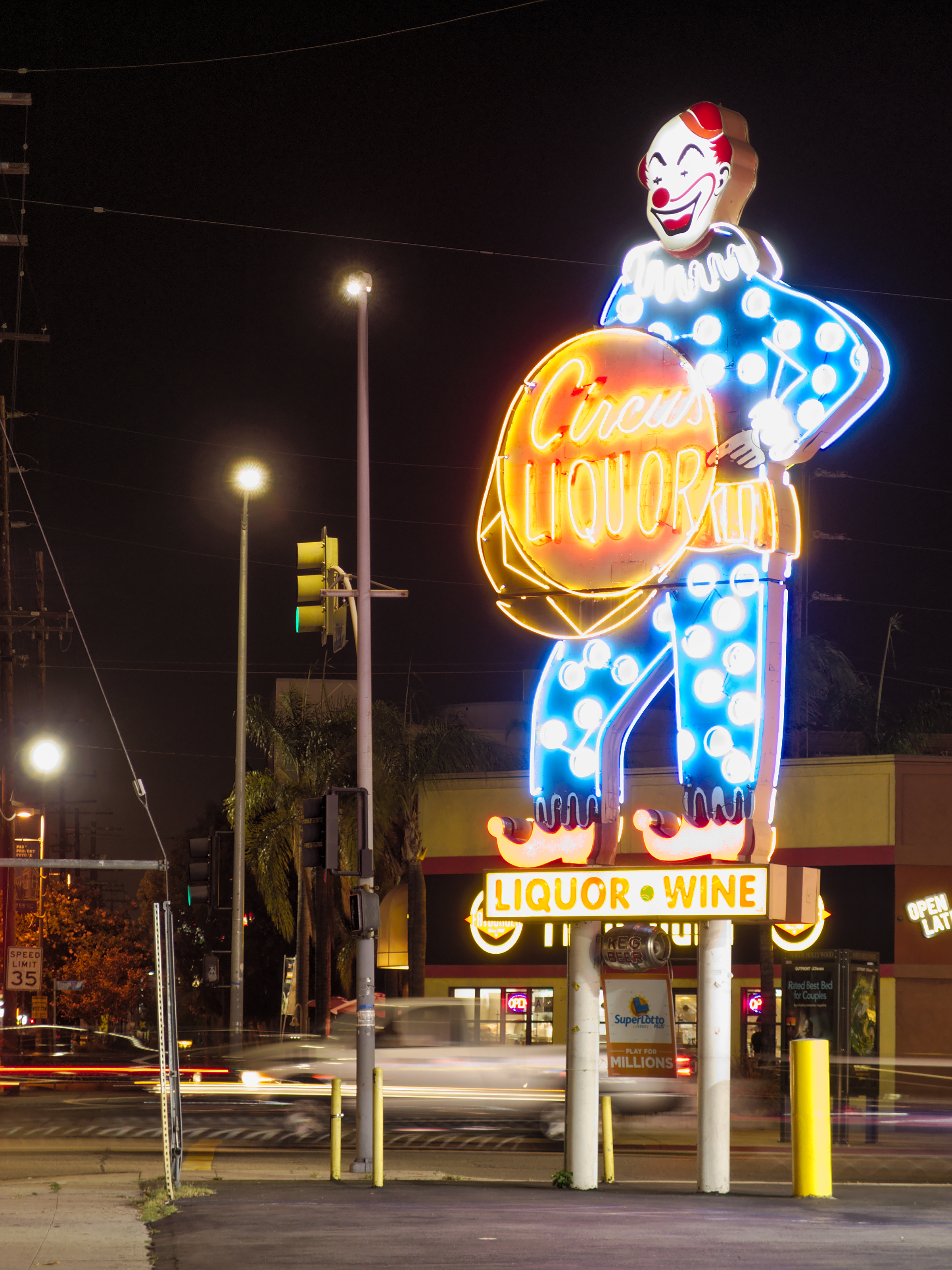 Circus Liquor is located in North Hollywood, California on the corner of Burbank Blvd. and Vineland Ave. This store has been used in many movies and commercials, as well as the most recent teen non-smoking campaign. My three sons always called the sign “clowny” whenever we drove by.