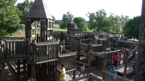 There’s a wonderful playground at Jacobson Park in Lexington, Kentucky. It’s a “creative playground,” so named because (obviously) it encourages children to be creative in their play. Sure, there are swing sets and monkey bars. But there are also wooden towers with twisty stairs and little wooden crawlways under them, ramps, sliding poles, bridges, and a wooden pirate ship. The kids are not always viewable. Our children can play for hours on a playground like this, mostly unsupervised, making up all sorts of games with the other children (who come to it from all over the city). This playground is 20 years old now, and is in danger of being demolished.