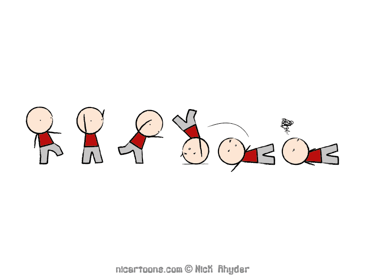 Oh, for the love of…! I have carpal tunnel syndrome from writing, drawing, typing, needlework, and playing instruments. I have neck problems from looking down at what i was reading too long. I dont think cartwheels are the problem for me because i could never do them.