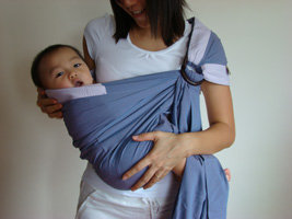 I actually believe the sling may have saved my life, or my first child’s. She was colicky from day 10 and we drove ourselves literally insane for the next six weeks trying everything to calm her down. Burned out the vacuum (white noise) bounced and bounced trying to get her comfortable, she hated swings, driving in the car, laying down, standing up! Then I heard about slings. I got one the next day and my life changed. She slept in it, ate in it hung out in it and pretty much stayed in it till she was 18 months old. And she didn’t cry! Most of the time anyway. For the first very short while I was afraid that she would smother – she seemed so small in the big pouch of fabric I thought maybe she couldn’t breathe but I just kept checking on her and after a few more weeks, as she grew and could move herself around, she was obviously just fine. And once they are a bit bigger the front facing position is awesome for checking out the world. I’m an advocate.