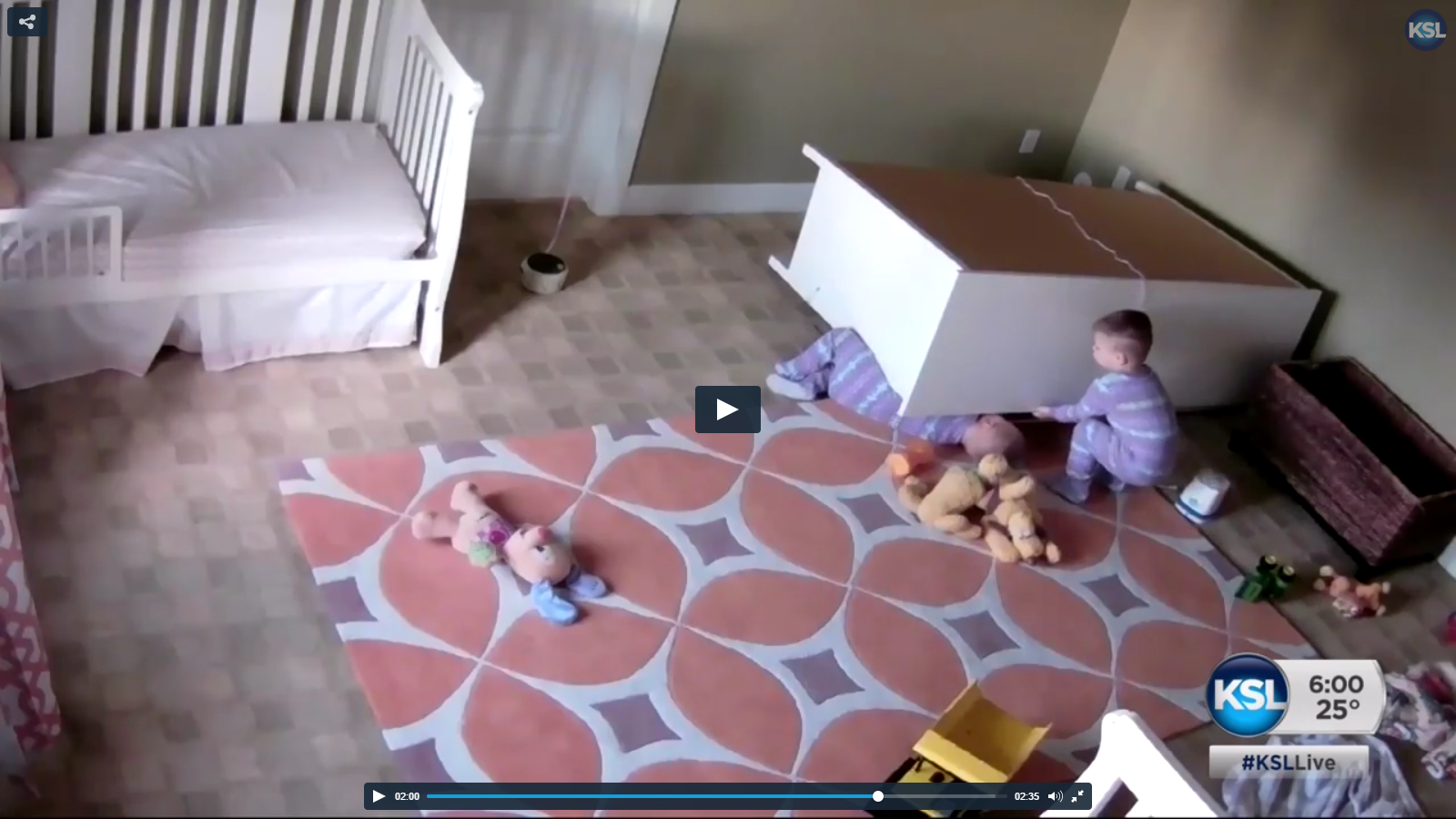 Of course, it certainly was a dangerous situation and I don’t mean to make light of it BUT putting it into perspective, if the dresser was light enough to be pulled down by a couple of 2-year-olds, it probably wasn’t heavy enough to do major damage to the youngster it fell on as you could plainly see in the video. Fortunately it didn’t fall on him in a bad way like directly on his head BUT it is a warning to bolt all dressers to the wall in a toddler’s bedroom.