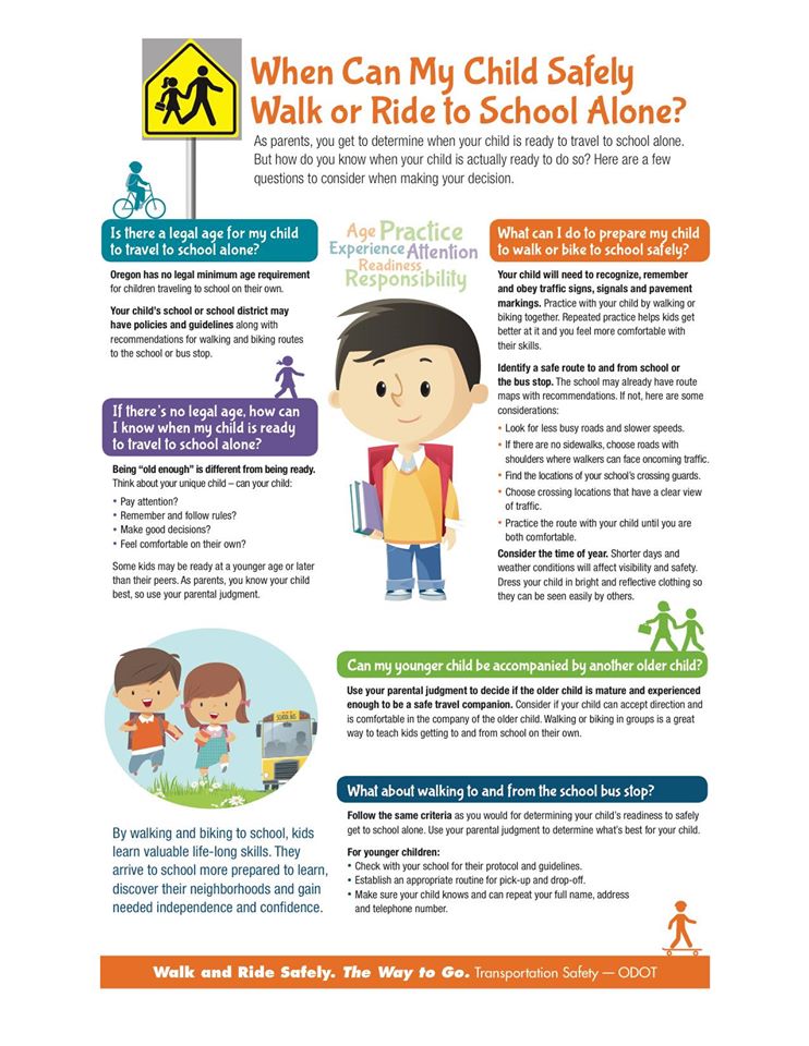Oregon has no legal minimum age requirement for children traveling to school on their own.