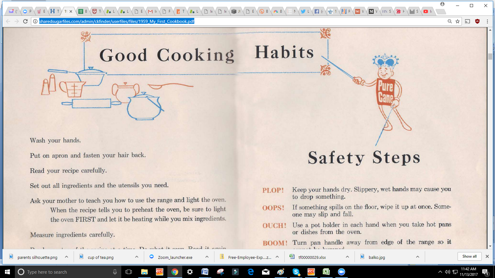 In the screenshot example, I can only discern that the instructions say “Ask your mother to teach you how to use the range and light the oven.” And it appears to indicate that the kids can do everything else themselves.