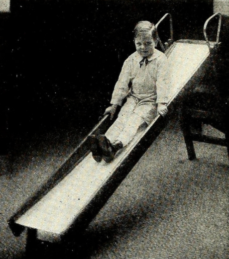 Apropos: here is a recreation of a slide from the 1920s: a plank of wood with no sides! Or one with holes to trap your legs: http://www.dailymail.co.uk/news/article-4560526/Replica-world-s-slide-complete.html